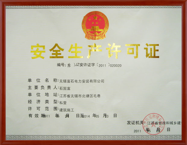 富石电力安全生产许可证(正本)
